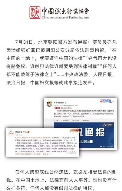中国演出行业协会:法律严惩,行业抵制,“明星”作恶绝不姑息