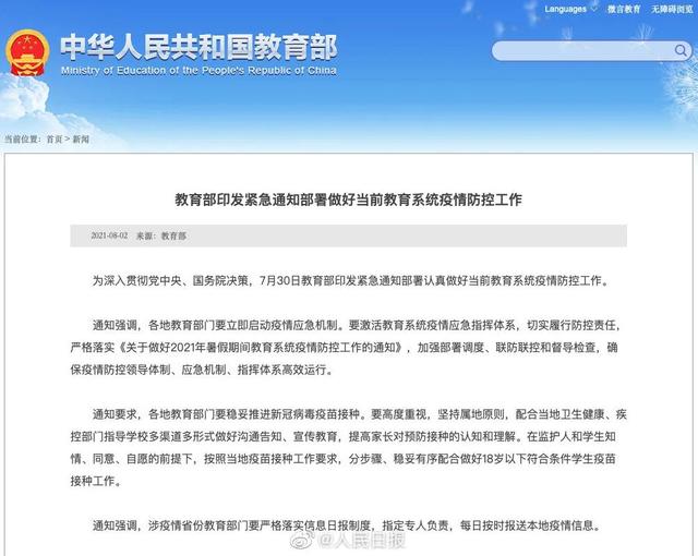 近日,教育部印发紧急通知,要求在监护人和学生知情、同意、自愿的前提下,按照当地疫苗接种工作要求,分步骤、稳妥有序配合做好18岁以下符合条件学生疫苗接种工作。