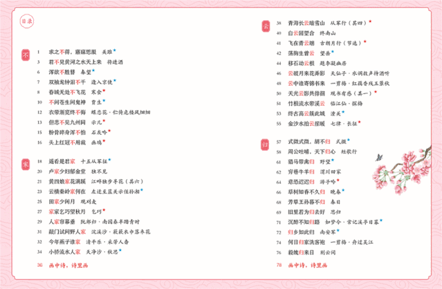 同时,书中对选自教材的200多首诗词,还逐一做了标记,重点突出,方便孩子更有针对性地学习。