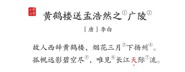 比如这首《黄鹤楼送孟浩然之广陵》,描绘李白与孟浩然两位老友辞别的情景。