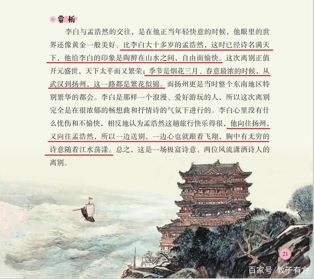 书里的赏析,就像一篇离别的小故事,给孩子点明了两位诗人的性格、情谊,也细致解析了诗中的季节、情感、历史背景与主旨。