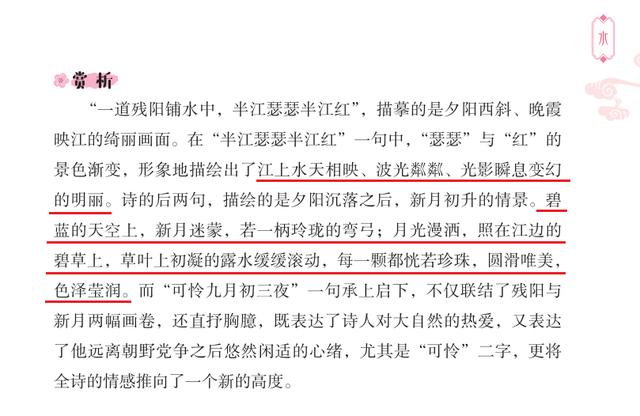 就像这篇白居易的《暮江吟》,把大自然的绮丽生动地描绘在孩子眼前。