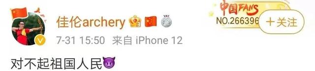 射箭运动员李佳伦在男子个人赛1/4淘汰赛中,不敌日本选手被淘汰,之后他发了这样一条微博: