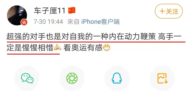 “高手对决,探索极限,惺惺相惜,家国情怀,是我从竞技体育看到的魅力。”