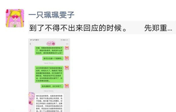 同时,王佩雯还在回应里表述到,自己出现在张哲瀚爸爸生日宴的照片上,也是张叔叔邀请她参加而已,并没有其他意思。甚至还在最后表达对张哲瀚现如今工作受到影响感到抱歉,还曾尝试和其工作人员进行联系,想要在网络平台亲自解释与张哲瀚的关系,为其辟谣。不过,后被该工作人员以保护王佩雯个人隐私而拒绝。所以,现在王佩雯在各个社交平台上的账号基本都被关闭或是注销的状态。