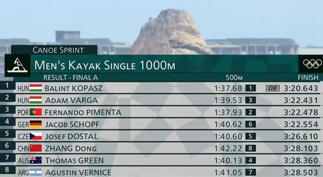 预赛和半决赛,张冬都是排在总成绩第八惊险晋级。决赛场上8个人,张冬在第1道次出发。前半程500米之后,张冬排在最后一位。最后250米,张冬还是第8位。最后,匈牙利选手包揽前两名,张冬冲刺超过了2位选手,最终拿到第6名。奥运会世界第6,张冬继续创造着中国皮划艇在这个项目上的历史最佳战绩的纪录,值得肯定!