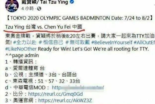 得意洋洋地在国外社交平台上喊话,台湾是一个国家。让小S感到暴毙的戴资颖也是“台独”分子。
