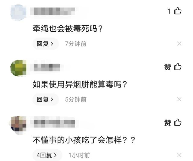 还有网友评论说:如果这些人遛狗不拴绳,那狗狗被毒死也是不值得同情,如果遛狗时具备安全措施,那确实死的可惜,同时也希望相关部门能够查明原因,调取小区监控,看看是什么人竟然如此心狠手辣,连续剥夺八只狗的生命,最后希望能够将投毒者绳之以法,严惩不贷。