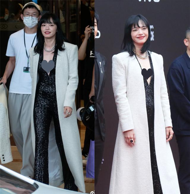 相比之下,影展的晚宴和发布会的造型自然是更精致的,并且不少造型都穿得比模特更好看。比如晚宴这套look是用了2021早秋系列的外套搭配了2021秋冬系列的半身裙,这两件单品照搬模特都容易翻车,要么压身高显随意,要么就显得不伦不类。