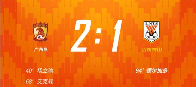 2021年7月27日20:00,中超广州赛区第9轮榜首大战,最终以广州击败山东泰山结束。凭借杨立瑜和艾克森的进球,以及德尔加多替补建功,广州2-1山东泰山,报了首回合被费莱尼补时1球绝杀的一箭之仇,送给山东泰山赛季首败的同时,也首次登上赛区积分榜榜首位置。