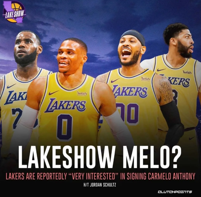 NBA名记Stein报道,安东尼收到湖人和尼克斯的邀请,正在两者间衡量。上赛季安东尼场均13.4分3.1篮板,投篮命中率42.1%,三分球命中率40.9%,表现非常的抢眼。湖人这个时候也许应该打詹姆斯这张感情牌了。