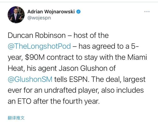 最后一笔,热火给了队内小将邓肯-罗宾逊。据沃神报道,邓肯-罗宾逊5年9000万续约热火此前就有消息称,热火将罗宾逊放上了交易货架,以寻求更加优质的球员,不过现在看来,热火还是舍不得这位年轻的小将。邓肯-罗宾逊在上赛季,代表热乎出战了72场比赛,场均13.1分3.5篮板,40.8%三分命中率。