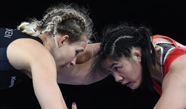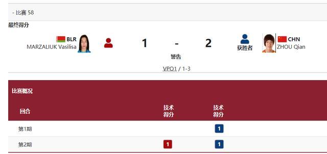 8月2日上午,中国选手周倩战胜白俄罗斯选手。