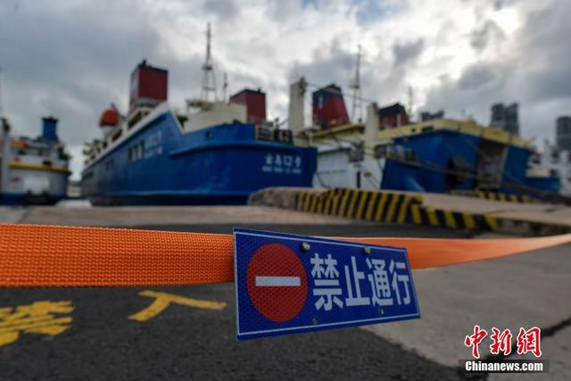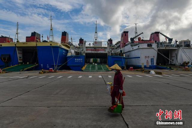 本文转自【中国新闻网】; 8月3日,停靠在海口港客运站码头的客滚船。因受热带低压影响,琼州海峡风力增大,琼州海峡航线于当日2时起全线停运。 中新社记者 骆云飞 摄