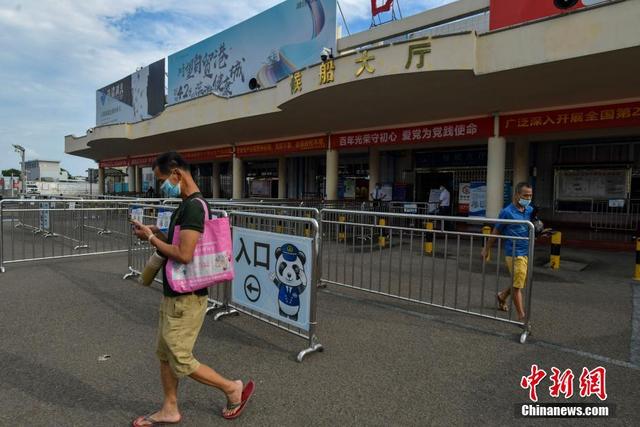 本文转自【中国新闻网】; 8月3日,旅客从海口港候船大厅前走过。因受热带低压影响,琼州海峡风力增大,琼州海峡航线于当日2时起全线停运。 中新社记者 骆云飞 摄