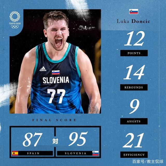 奥运男篮小组赛最后一场对决:西班牙vs斯洛文尼亚,这可能是本届奥运所有小组赛当中,最引人关注的一场。最终斯洛文尼亚95-87逆转击败西班牙,奥运会三战全胜,高居小组第一!值得一提的是,东契奇的国家队战绩已经来到16胜0负!