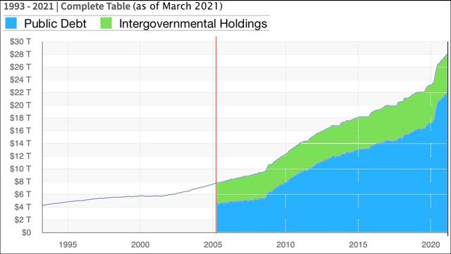 美国联邦政府债务走势图(1993年至2021年3月份)