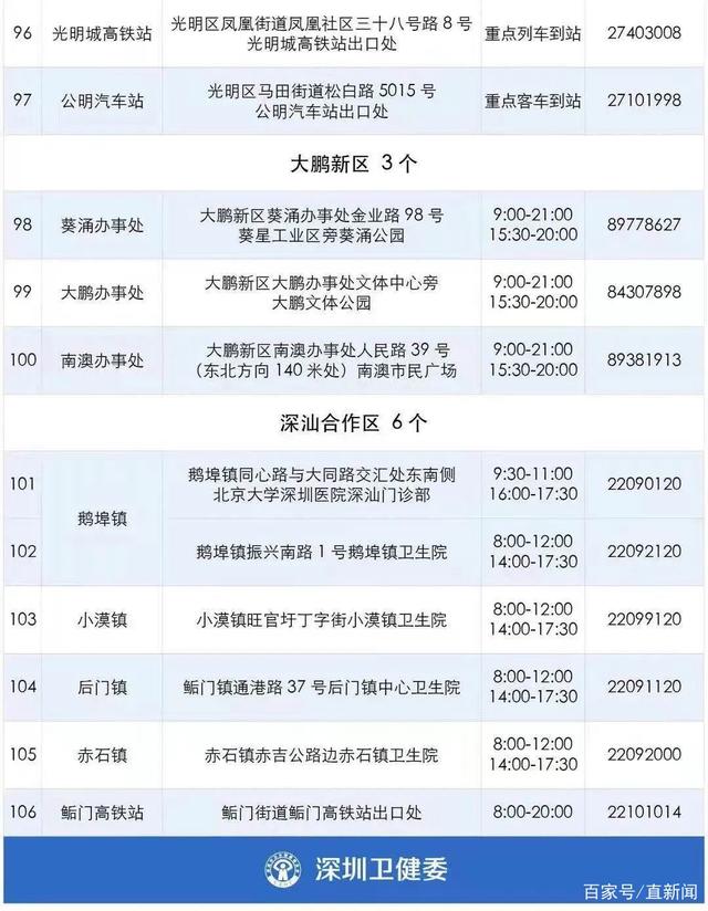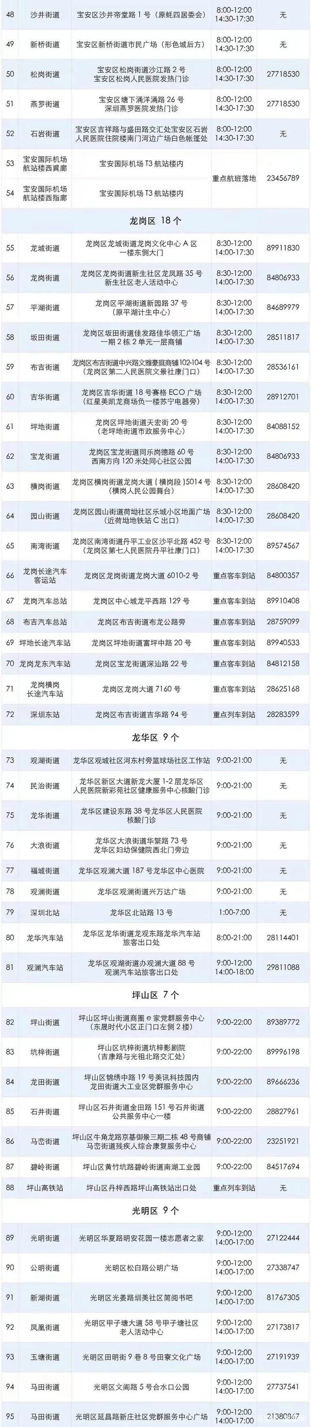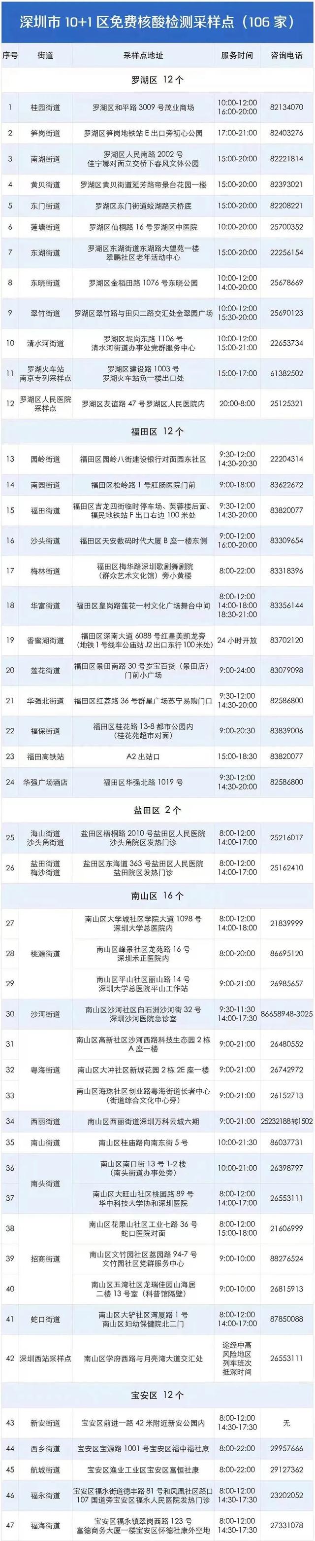 深圳全市共有106个检测点可提供给上述人员免费测核酸。