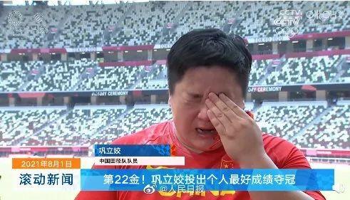 在赛后采访中,巩立姣泪流满面激动地说道:“我练习铅球练了21年。人一定要有梦想,万一实现了呢!”