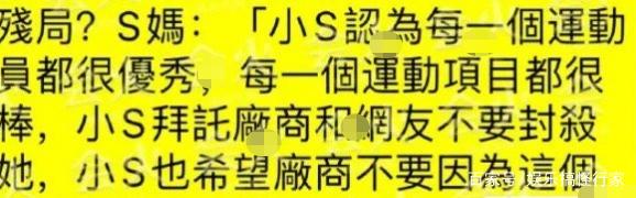 此外,小S的妈妈也帮女儿传了话,因为言论问题,多个品牌方跟小S解约,现在她已经意识到问题的严重性了,小S还拜托厂商和网友不要封杀她!也难怪她着急,被解约之后,加上女儿的代言,知情人爆料小S已经损失3200万台币了,