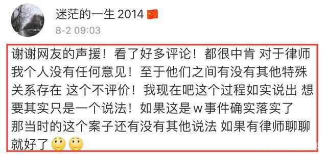 谢谢网友的声援!看了好多评论,都很中肯,对于律师我个人没有任何意见!至于他们之间有没有其他特殊关系存在,这个不评价!我现在把这个过程如实说出,想要其实只是一个说法!如果这是吴亦凡事件确实落实了,那当时的这个案子还有没有其他说法,如果有律师聊聊就好了。