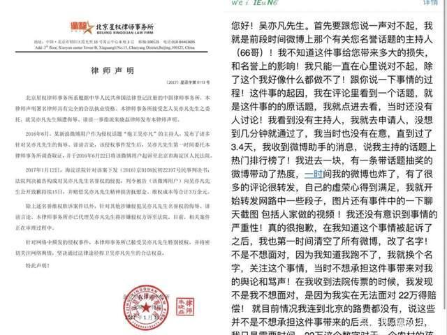 哪知在胆颤心惊中,2017年1月份,王吉胜还是收到了吴亦凡委托方北京星权律师事务所,发出的《律师声明》。