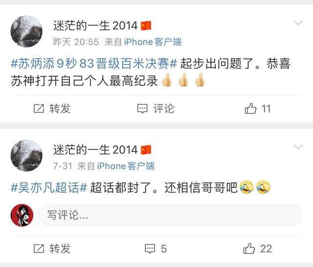 7月31日,吴亦凡超话被封。他发了一句“还是相信哥哥吧”之后,又去看奥运会了。