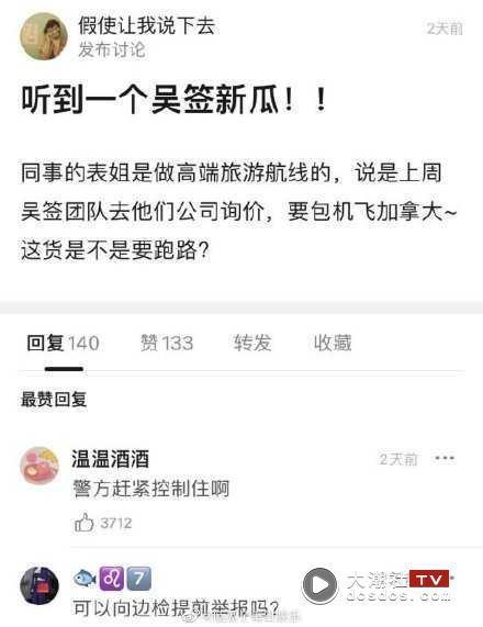 ▼传闻吴亦凡公司曾询问包机前往加拿大的事情。(图/翻摄自微博)