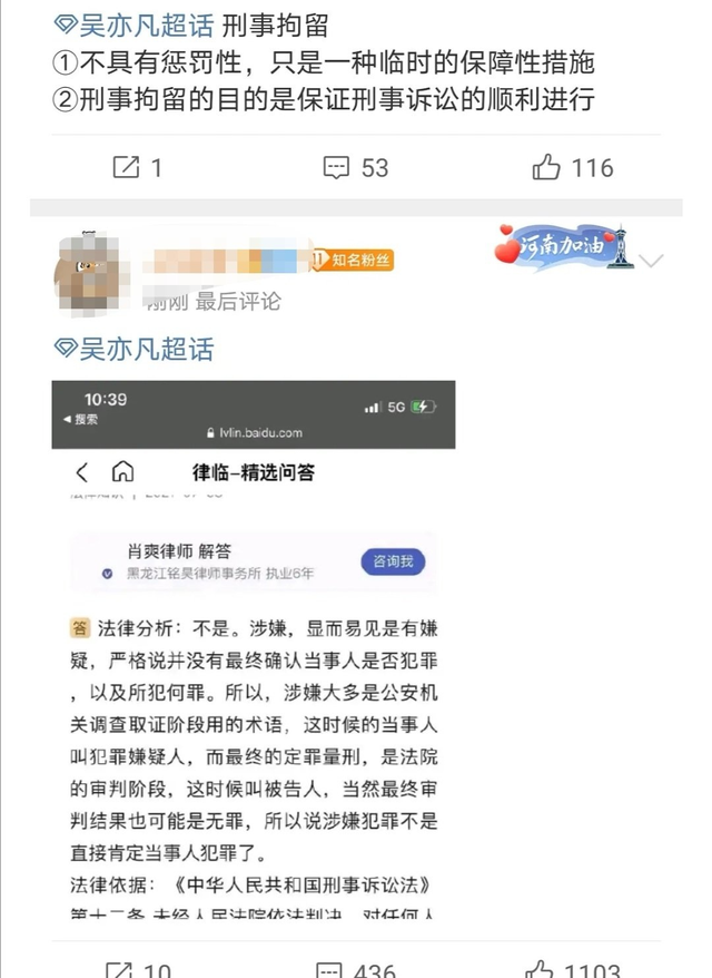 这种意见和声音应该是目前最多人抱有的想法,只能说这些粉丝目前还有些理智,相信法律的公正判决,不过该说不说,作为顶流明星,如果警方没有确凿证据,是不会发声明的,吴亦凡涉嫌QJ已经是比较确定的事情,当然,我们国家的刑拘并不是没有无罪释放的先例,不过警方执行刑拘后,还被无罪释放的几率仅为万分之4