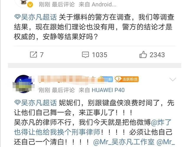 还有网友假扮吴亦凡粉丝,进入粉丝群后才发现里面的聊天内容更震撼,有粉丝表示,一定要筹钱帮吴亦凡换律师,如果他不能帮助凡凡获得清白,那么就冲爆他的账号,话说这观点一提出来,谁还敢帮他辩护?