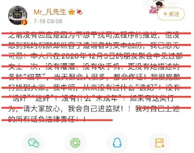 从今年7月开始,吴亦凡事件发酵了已有月余,经历了河南水灾和奥运会后,本来以为这件事情就要被舆论一笔带过,可在7月31日,朝阳警方的一则通报瞬间把吴亦凡又拉向了舆论焦点,在这则通报中,警方明确表示:娱乐圈明星吴亦凡,因被举报多次与年轻女性发生关系,并在调查中有涉嫌QJ罪的可能,现已被北京警方刑事拘留