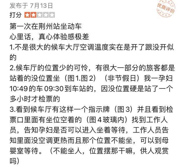 7月13日,大众点评网友在“荆州火车站”页面评论截图。