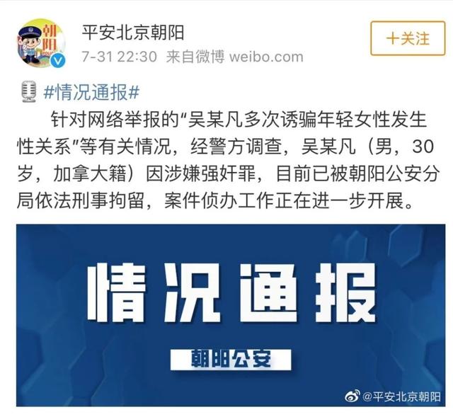 前天晚上把微博炸到局部网络不顺的新闻,是吴亦凡因涉嫌强奸罪被刑拘。