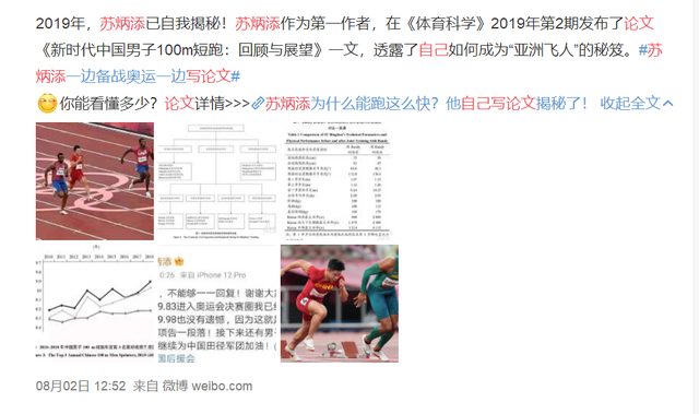据说苏炳添是一边备战奥运,一边写论文的。“我研究我自己”,“参加奥运会是为了亲自搞实验数据”的既视感有没有?