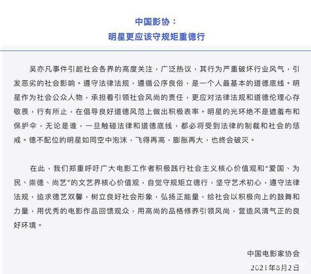 影协:明星更应该守规矩重德行。
