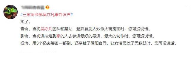 音协,当初吴亦凡团队和某站一起踩着别人炒作大碗宽面时,您可没说话。