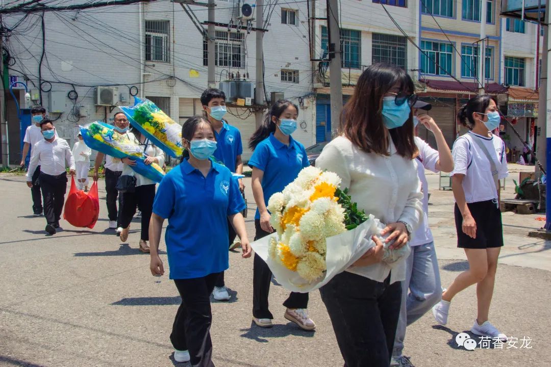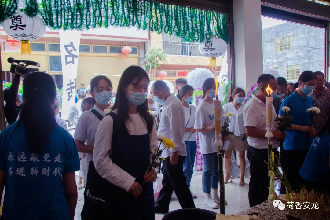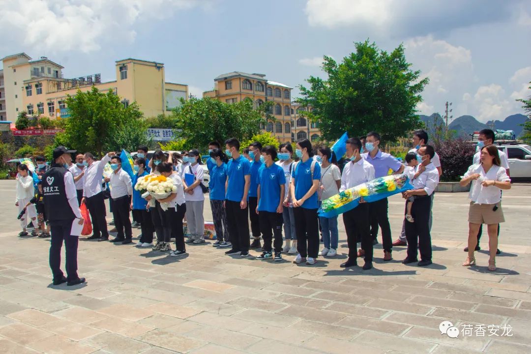 7月30日中午,安龙县义工联合会会长聂顺贞带领义工志愿者以及安龙睛彩眼镜视光中心、安龙县好再来食品经营部、安龙县忠林批发部、安龙左岸音乐餐吧、安龙柴火战斗鸡金碑店、贵州应用技术职业学院企业、学校学生代表前往龙广镇悼念抗洪救灾英雄何国勇同志。