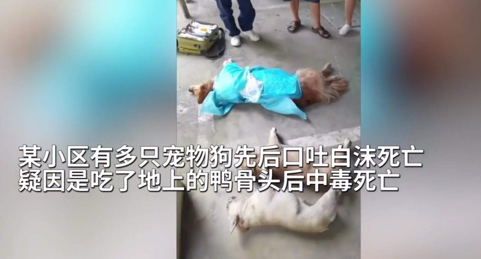 “当时是我妈下楼遛狗,走到一个地方看到那里有好多鸭骨头,一时没叫住狗就被它误食了几个,回家之后狗狗就中毒了。”一位狗主人表示,“现在已经报警了,因为出现很多起,不是偶然现象,警察到现场后就取样解剖,大家都非常难过,希望早日找到凶手。”