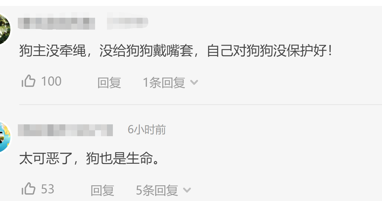 但也有一些网友认为,宠物狗在外面随便吃东西结果被毒死,完全就是自找的,“狗主人没牵绳,也没给狗狗戴嘴套,是自己没保护好狗狗!”
