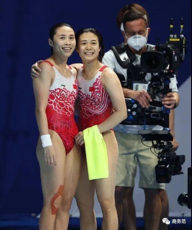跳水队的赛服也非常好看,祥云图案又好似水中波纹。