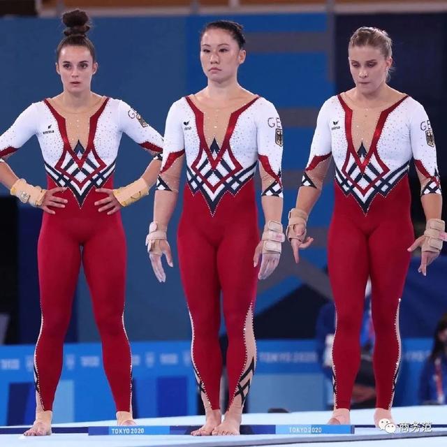 倒是体操队员的比赛服,首次放弃了传统三角高衩操服,身穿全身式体操服登场,在本届奥运会出了圈↓