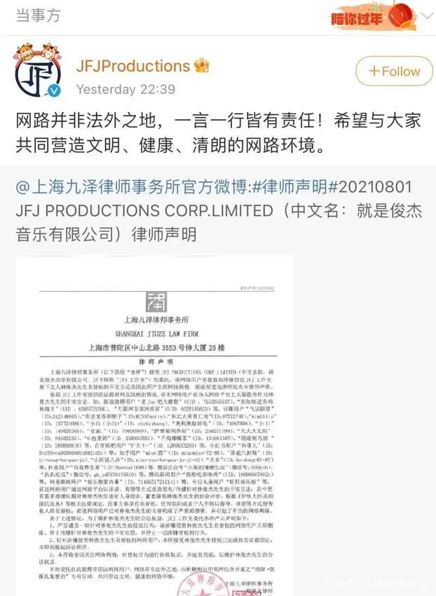 昨晚林俊杰律师函发表声明:对涉嫌侵犯名誉权的网络用户立即提起诉讼。