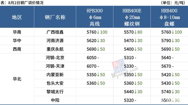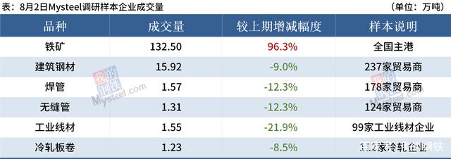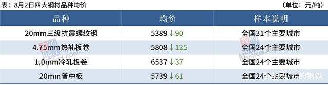 ◎ 8月2日,全国高炉成本4743元/吨,周环比降181元/吨;利润677元/吨,周环比增101元/吨。电炉成本4935元/吨,周环比增7元/吨;利润418元/吨,周环比降59元/吨。详情>>