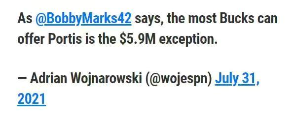 其中,帮助雄鹿队拿下总冠军的波蒂斯无疑就成为了这类群体中最亮的仔。据悉,雄鹿队受到工资帽的限制,下赛季只能为波蒂斯提供一份价值590万美元的迷你中产合同。而在总决赛大放异彩的他,对此并不满足,拒绝续约并开始试水自由市场,打算寻求一份至少超过980万美元的薪资。