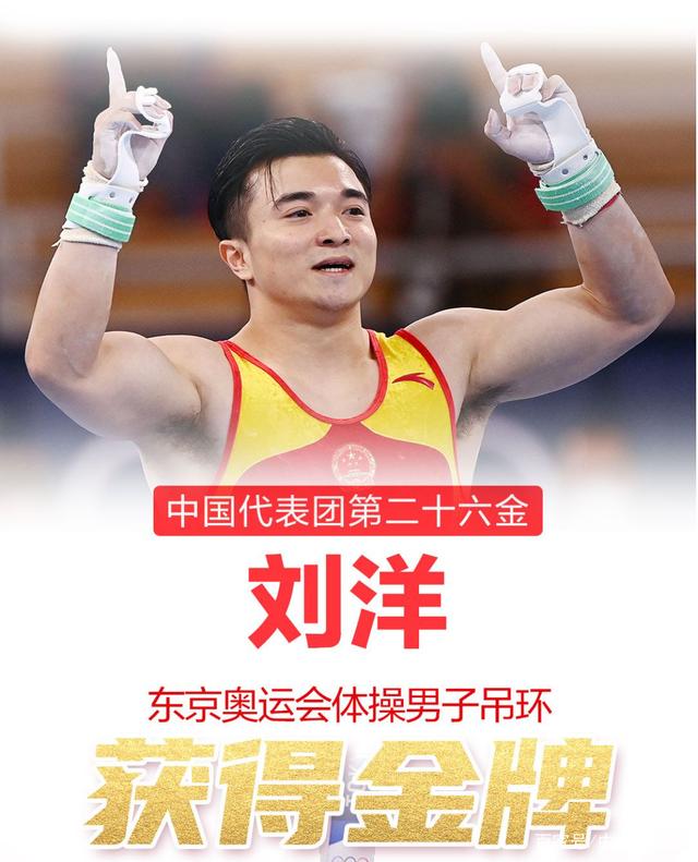 第26枚金牌是在东京奥运会体操男子吊环决赛中,刘洋以15.500分夺得金牌,队友尤浩以15.300分取得银牌。