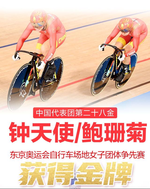 昨天中国队收获的最后一枚金牌,也是第28枚金牌,来自东京奥运会自行车场地女子团体赛决赛,钟天使和鲍珊菊摘得金牌。