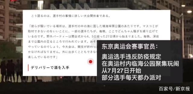 【摘要】 8月3日,日本杂志《日刊新潮》爆料,很多入驻奥运村的运动员在奥运村里面的临海公园内玩闹,自7月27日起,一部分运动员们每天晚上都在这里