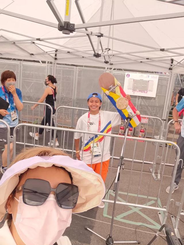 玛杰琳在刚刚结束的奥运新项目女子滑板街头滑板决赛中排名第7,这位22岁的菲律宾女孩,个头矮小,皮肤黝黑,微笑时露出亮闪闪的金属牙套,橘红色的裤子和反转的蓝色棒球帽使她在球场上异常亮眼,更不用说她每次出场时随着音乐夸张的扭动,即使摔倒,爬起来仍然高举双手,呼应那些为她鼓劲的记者。