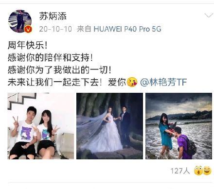初中的时候,苏炳添与其夫人林艳芳是同一个小组,林艳芳是小组长,天天去催苏炳添交作业,叫他快点写。