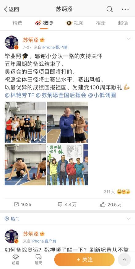 而苏炳添在一旁应和:”她是我组长,我是她领导。“
